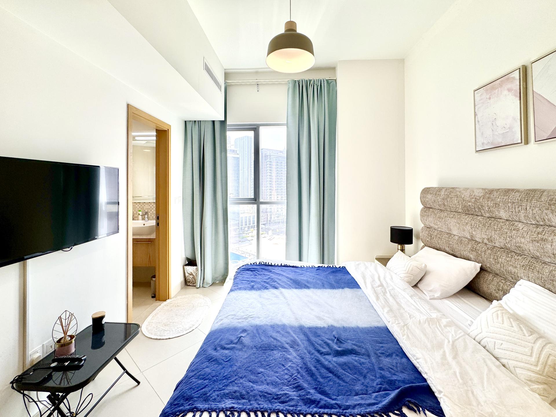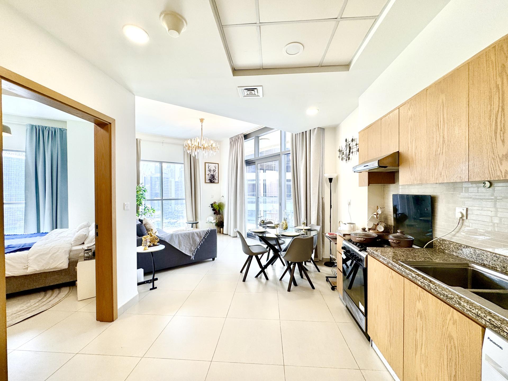 Stay in the heart of Downtown Dubai at Bellevue Tower with stunning Burj Khalifa views from your home. Just minutes from Dubai Mall, this modern apartment offers elegant interiors, a fully equipped kitchen, high-speed Wi-Fi, and access to the tower’s pool and gym. Perfect for business, leisure, or a romantic getaway in Dubai’s most iconic neighborhood.